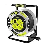 Masterplugのコードリール(20m・グリーン)は、防雨設計と温度保護機能を備えているため、使いやすさがあります。