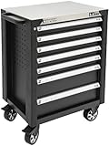 KIKAIYA ローラーキャビネット 7段 ステンレス天板 SUS430 ブラック 頑丈 高耐久 ロール 作業台 ツールキャビネット ワゴン 工具箱 TBRS-7B